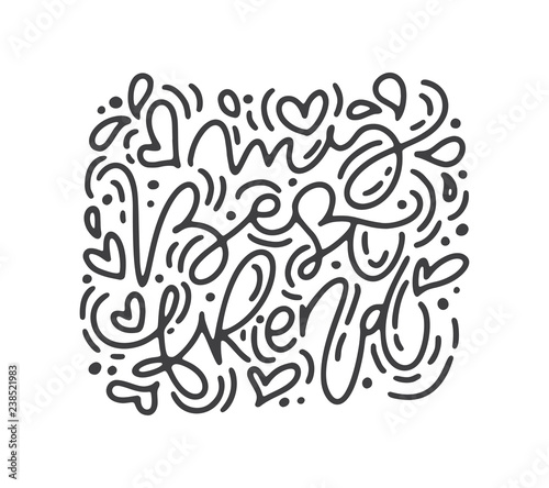 Vector Monoline Calligraphy Phrase My Best Friend Valentines Day Hand Drawn Lettering Heart Holiday Sketch Doodle Design Valentine Card Love Decor For Web Wedding And Print Isolated Illustration Stock Vector Adobe